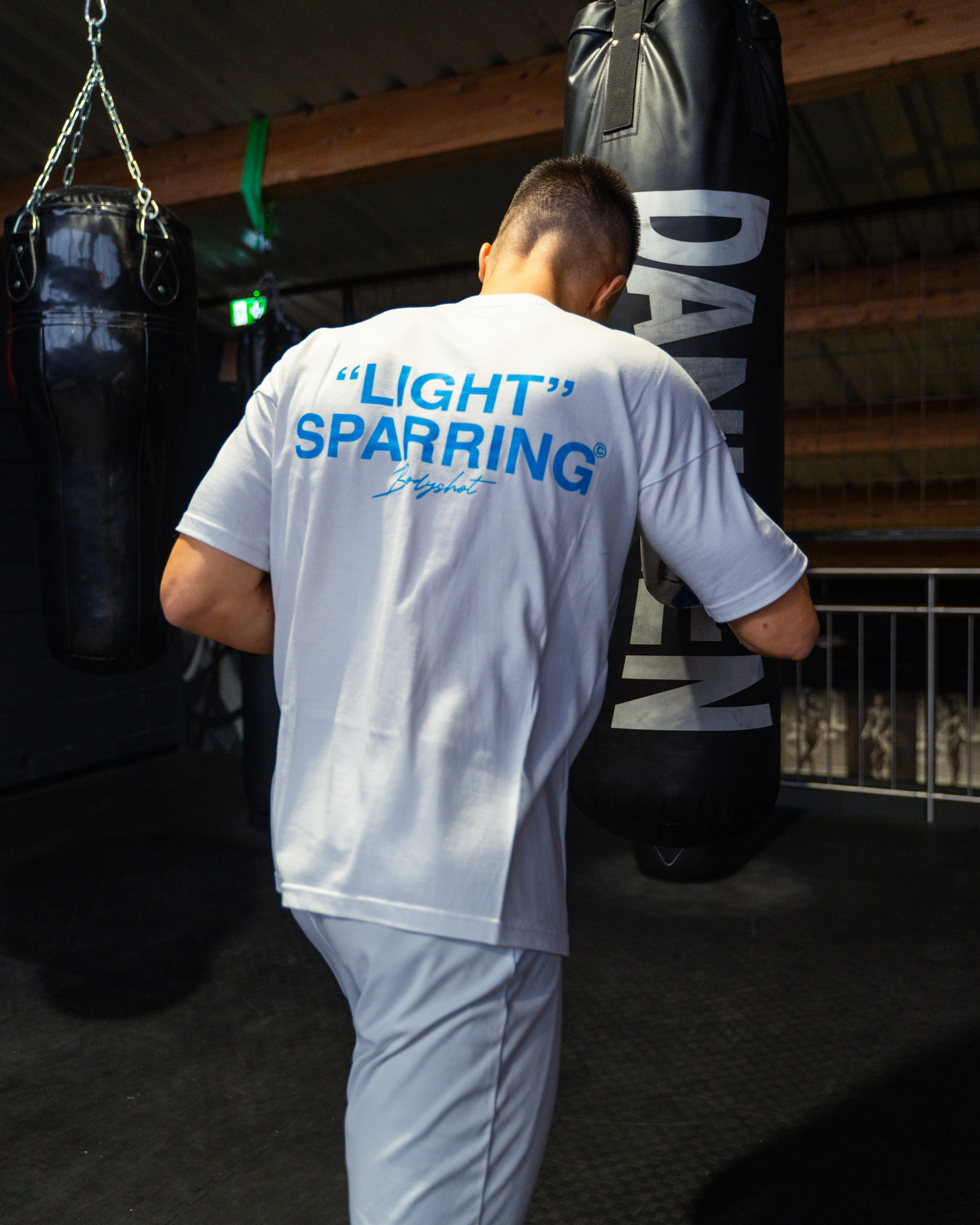 ''The white light sparring tee with my new rival gloves in combination just looks amazing''